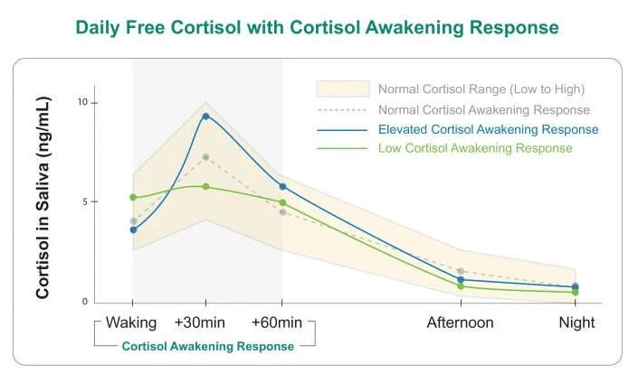 • Daily free cortisol patterns to provide insight into adrenal insufficiency or symptoms of chronic stress